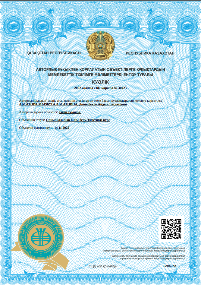 «Қазақстандағы олимпиадалық білім беру: теория және әдістеме» монография